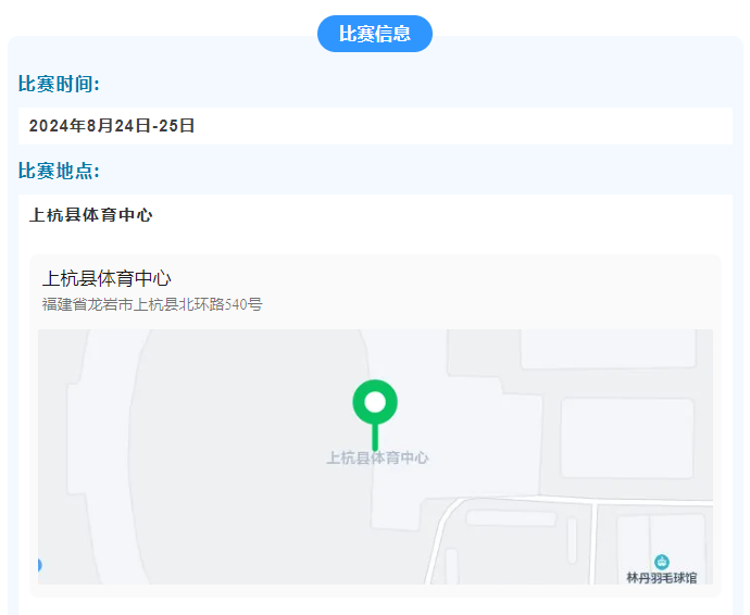 本次赛事由福建省体育局主办,福建省乒羽网运动管理中心、福建省羽毛球协会、上杭县文化体育和旅游局承办,龙岩市羽毛球协上杭县羽毛球协会协办。