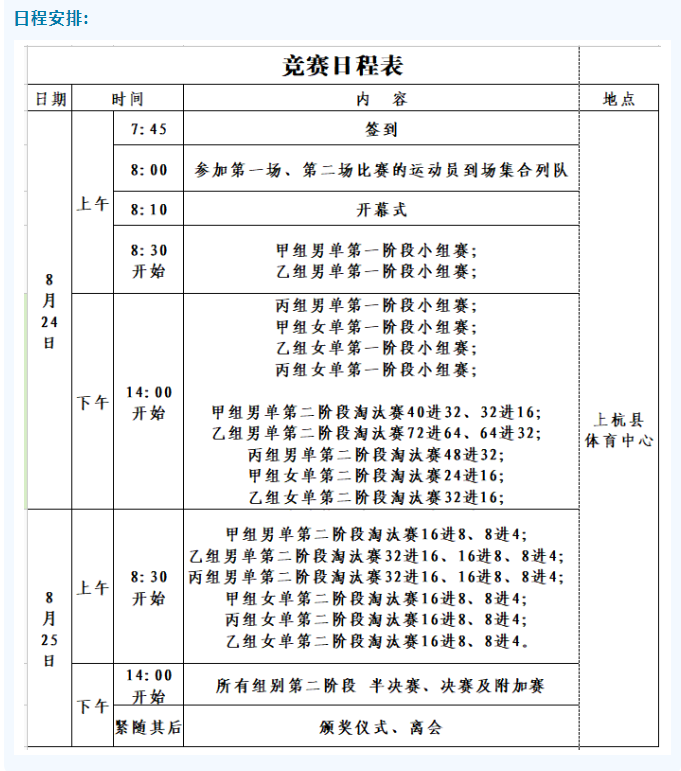 男子单打和女子单打两个竞赛项目
