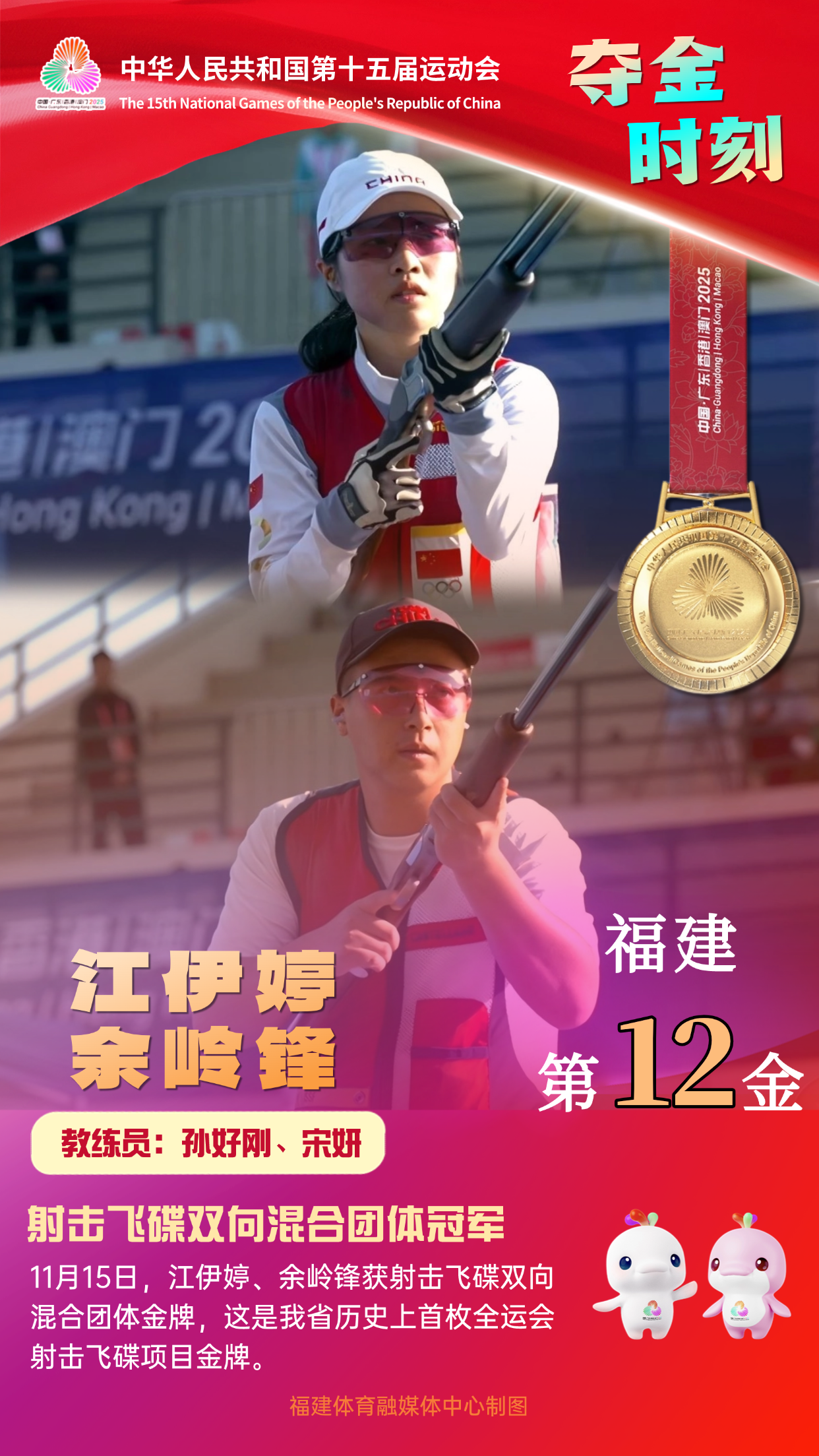 由莆田市输送的运动员江伊婷,2004年8月出生,2018年5月进入省射击队,2019年进入国家队。曾获2023年杭州亚运会射击飞碟女子双向个人金牌、全国射击锦标赛(飞碟项目)女子双向个人金牌,2024年巴黎奥运会射击飞碟双向混合团体第三名、全国射击锦标赛(飞碟项目)女子双向个人金牌,2025年意大利射击飞碟世界杯女子飞碟双向个人第三名、第十六届射击亚锦赛飞碟双向混合团体金牌、全国射击冠军赛(飞碟项目)女子双向个人第二名,第十五届全国运动会射击女子飞碟双向第三名。