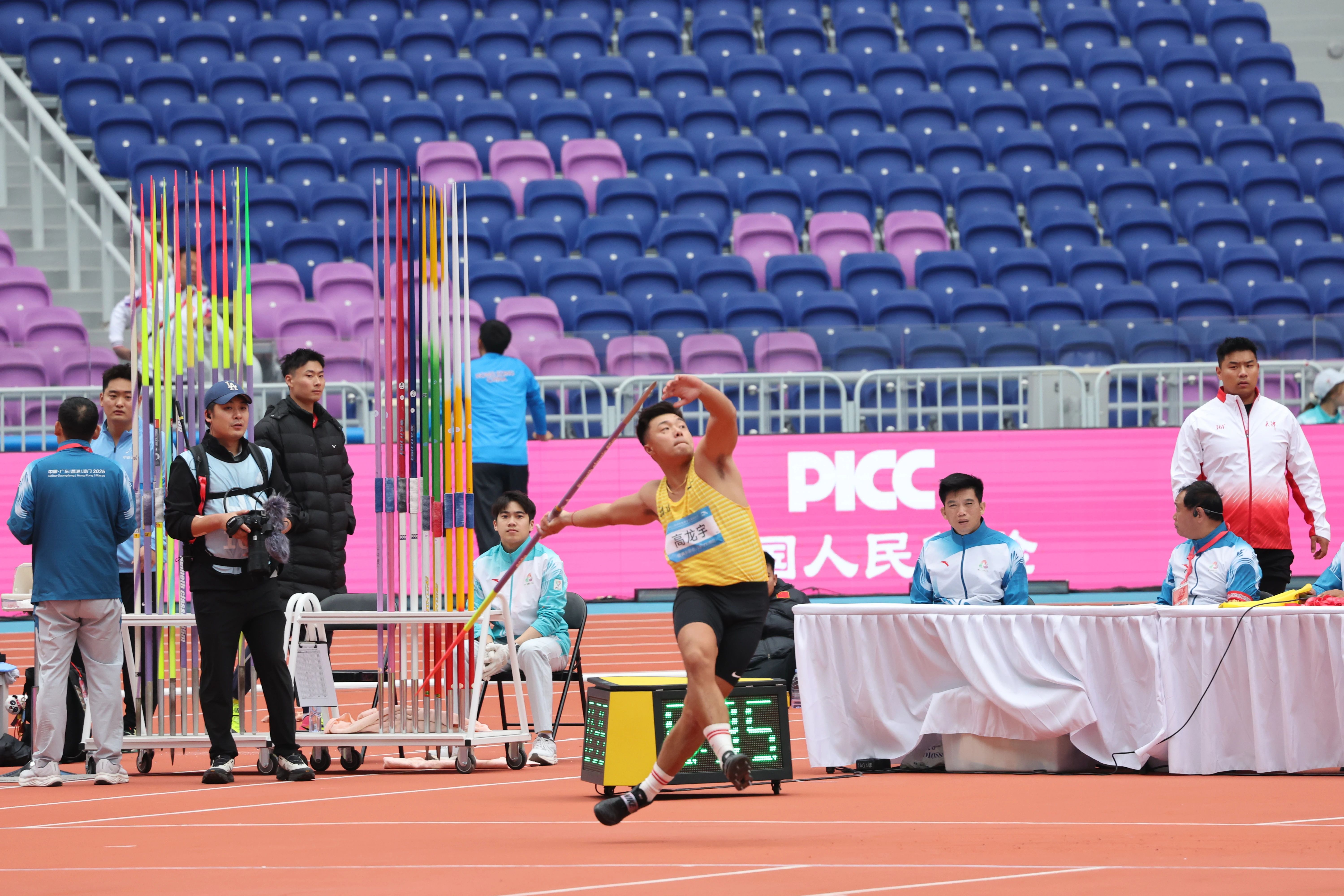 由我省引进的运动员高龙宇,2000年1月出生,2018年1月进入省田径队,曾获得2019年全国田径锦标赛男子标枪第六名、2025年全国田径锦标赛男子标枪第六名。