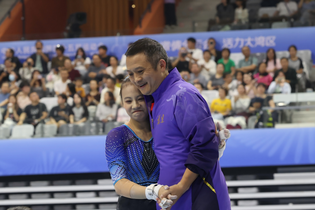 这是她个人第一枚全运会金牌,一天前,她刚刚获得个人全能银牌,时隔四年,她以1金1银的成绩,为自己的第二次全运之旅画上句号。