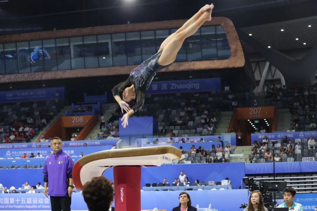 当邱祺缘在肇庆新区体育中心体育馆稳稳落地、举起双手时,全场顿时发出惊呼!这位18岁的漳州姑娘在本届全运会斩获1金1银,以优异成绩再度证明了自身实力。