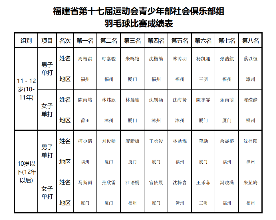 7月22日下午,福建省第十七届运动会青少年部社会俱乐部组羽毛球比赛在福州马尾体育馆圆满落下帷幕,本次比赛共吸引了来自全省各区市9支青少年队伍,共计165名运动员报名参加,比赛自7月20日挥拍开赛,为期3天。
