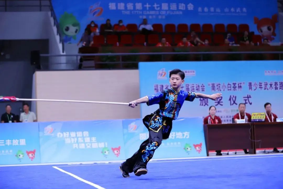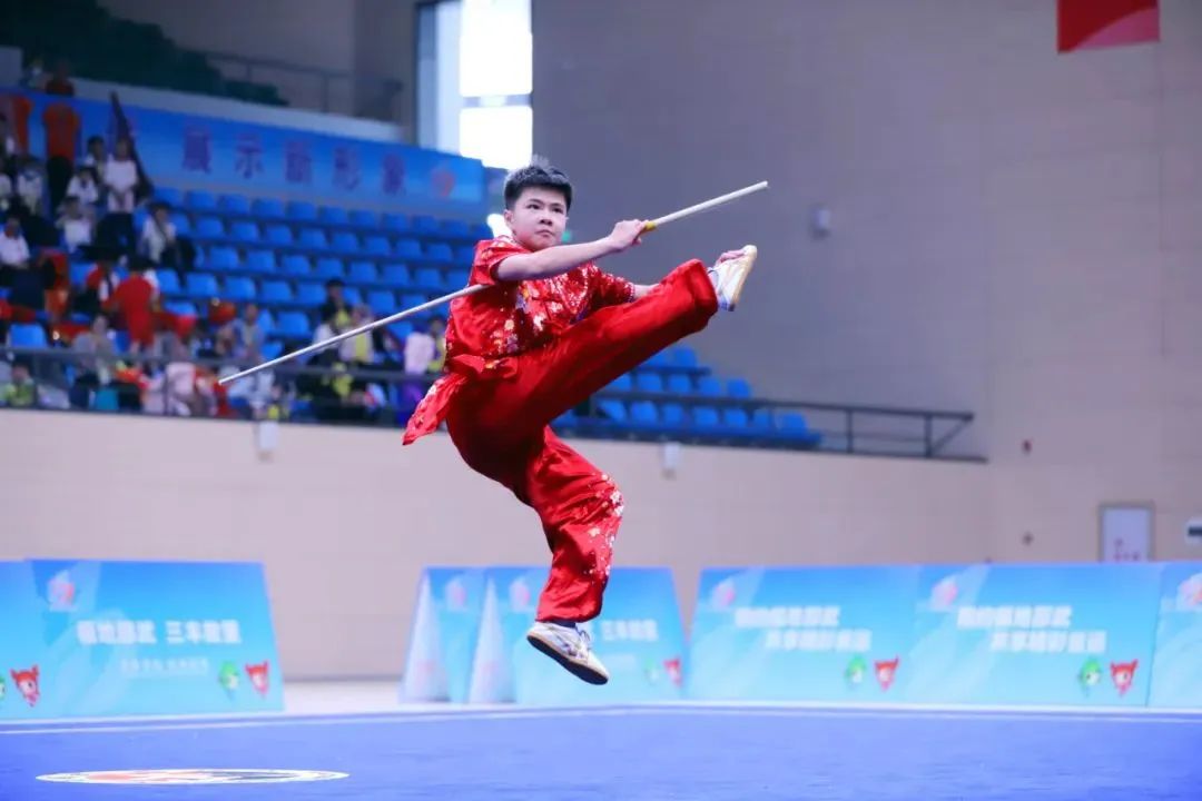 首日比赛,分别开展了女子少年乙组长拳、男子少年甲、乙组枪术、男子少年甲组棍术、女子少年甲组棍术五个项目的比拼。