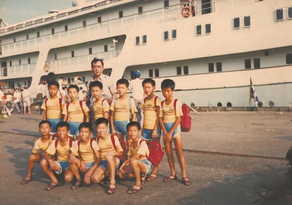 1988年7月28日,霞浦儿童足球队的11名队员在三沙古镇码头合影留念。他们要搭上福州开往上海的茂新轮,辗转至秦皇岛参加足球比赛。