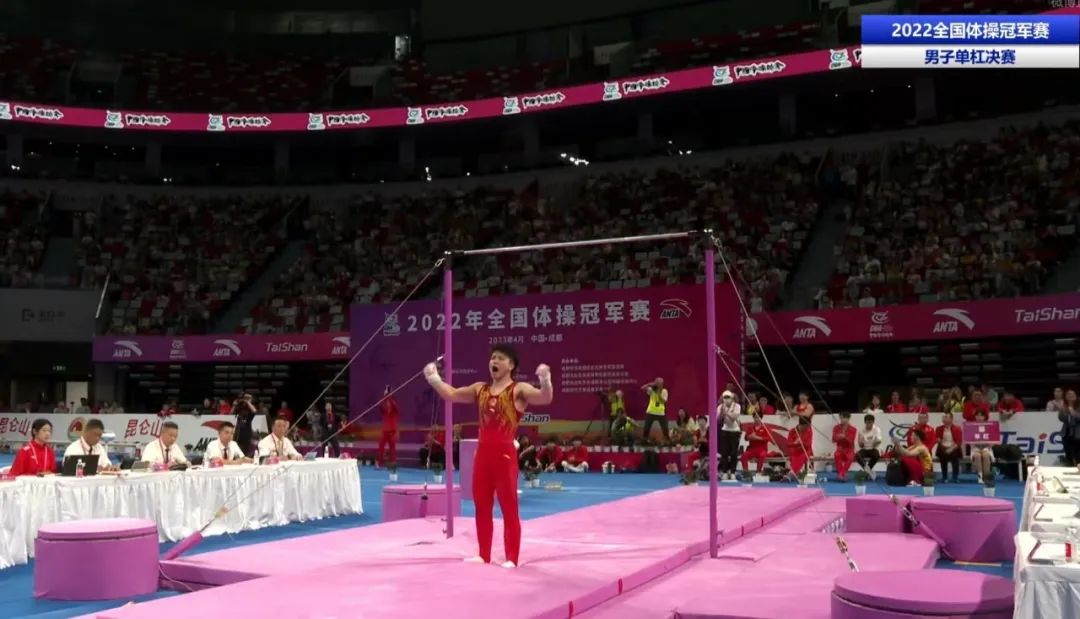 此次单杠比赛中斩获冠军!