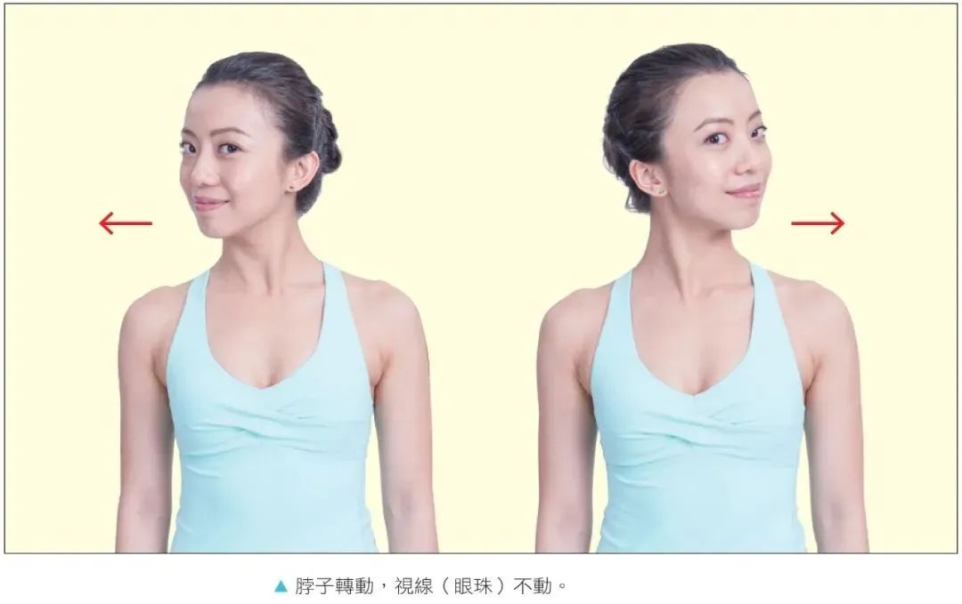 3.视线维持注视前方不动,脖子往左和往右转到极限。