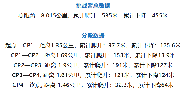 1.赛道均以台阶、栈道为主要路况,未有泥土路,建议大家穿防滑的路跑鞋、越野登山鞋等。