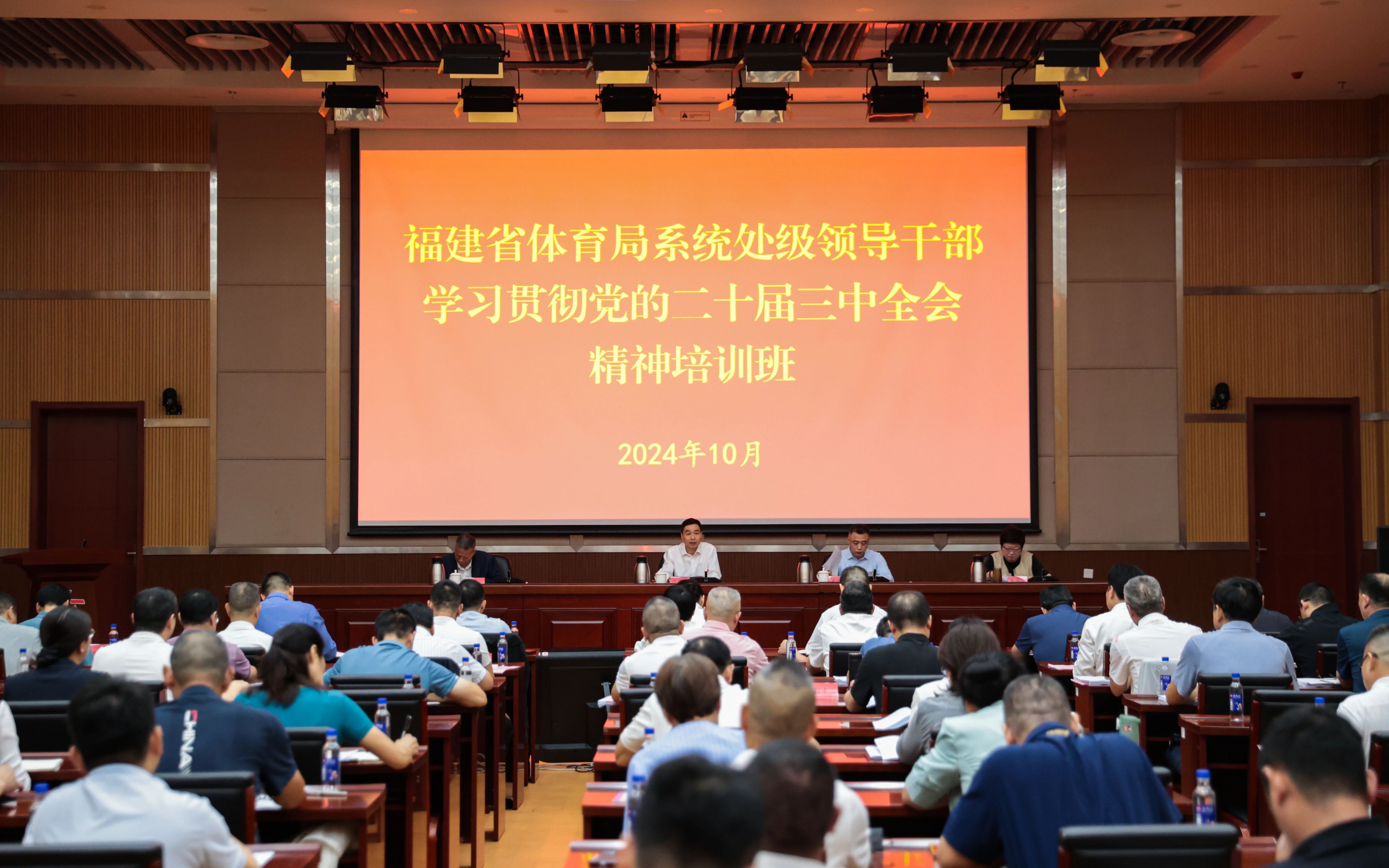 为深入学习宣传贯彻习近平总书记在福建考察时的重要讲话精神和党的二十届三中全会精神,全面深化体育改革,加快体育强省建设步伐,省体育局于10月27日举办局系统处级领导干部学习贯彻党的二十届三中全会精神培训班。省体育局党组书记、局长叶得盛出席开班式,传达学习习近平总书记来福建考察时的重要讲话精神,并宣讲党的二十届三中全会精神。