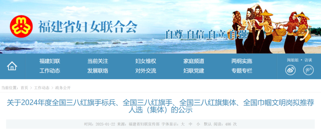 福建省妇女联合会网站发布公示