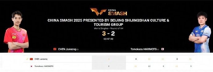福建小将陈俊菘以3比2
