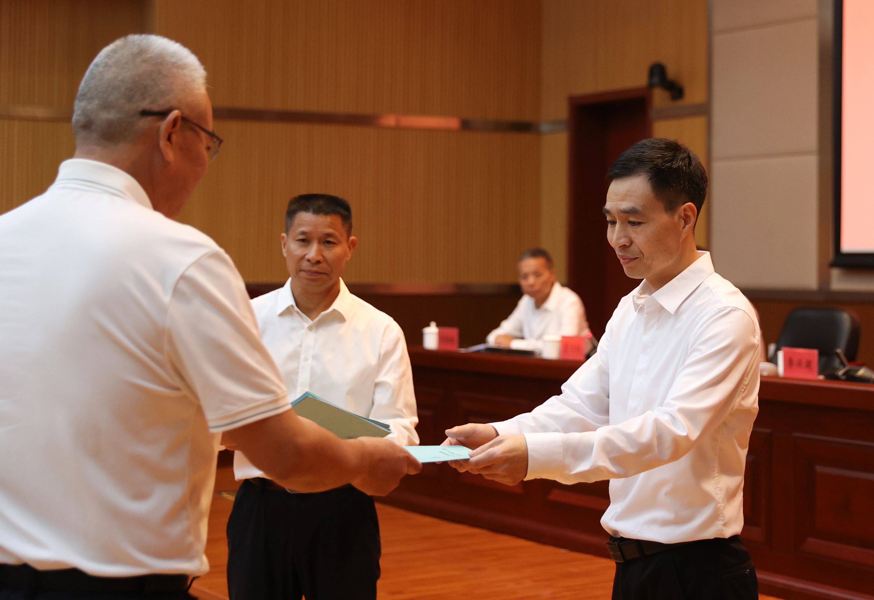 授旗环节,福建省副省长李兴湖向代表团授旗,省体育局局长叶得盛接旗。