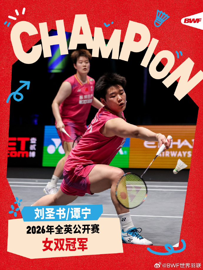据悉,这是圣坛组合职业生涯首次解锁全英赛女双桂冠,也帮助国羽自2019年陈清晨/贾一凡后,时隔七年再度收获这项荣誉。同时,圣坛组合也实现了高级别赛事三连冠,成功解锁当今世界巡回赛全部四站超级1000赛冠军。