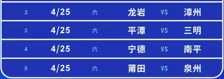闽超联赛龙岩、平潭、宁德、莆田